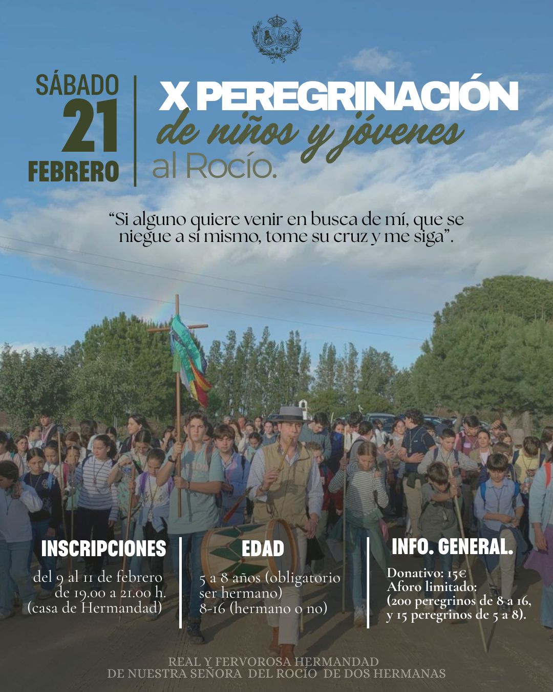 La Real y Fervorosa Hermandad de Nuestra Señora del Rocío organiza una de las citas más esperadas para los más pequeños y jóvenes de la localidad: la X Peregrinación de niños y jóvenes al Rocío. Bajo el lema «Si alguno quiere venir en busca de mí, que se niegue a […]