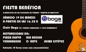 El sábado 19 de marzo a partir de las 16.30, se celebrará en BOGA CAFÉ una Fiesta Benéfica a favor de las Colonias de Verano «Semper in Amicitia» de la Asoc. Parroquial del Prendimiento (Parroquia del Ave María).
