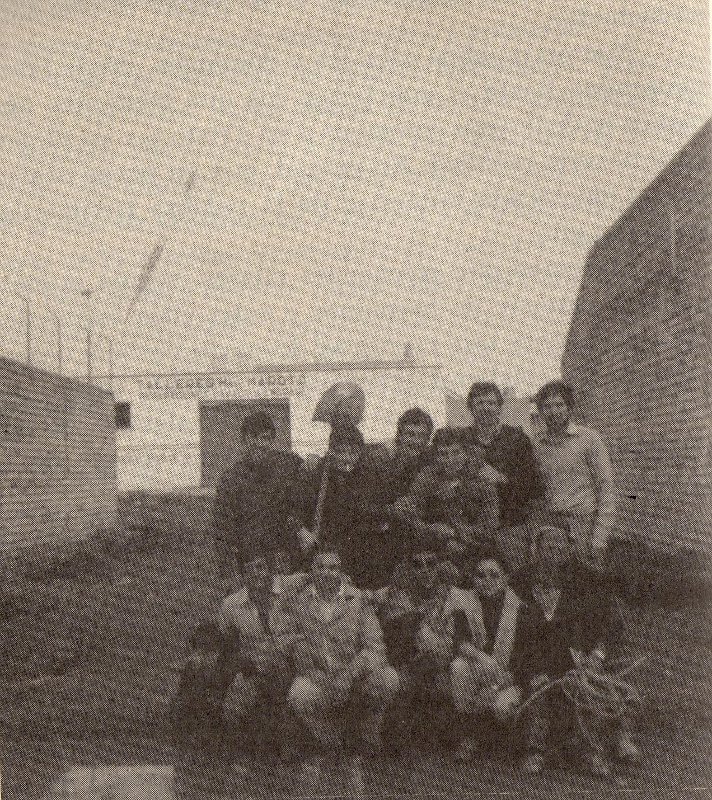 Una mañana fría de febrero de 1983, un grupo de hermanos posa antes de empezar a cavar los cimientos de la nueva casa Hermanad.
