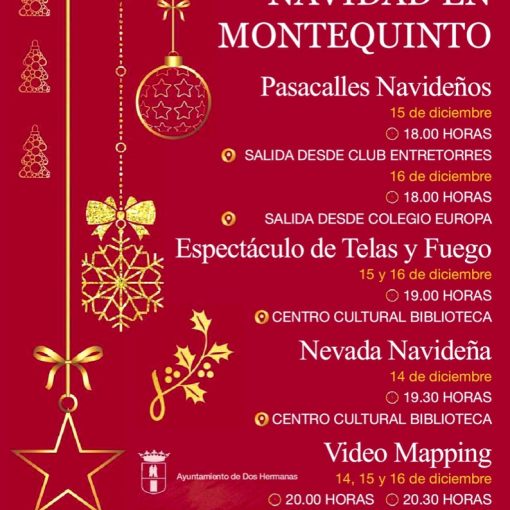 El Ayuntamiento de Dos Hermanas ha programado una serie de actividades navideñas en Montequinto para los días del 14 al 16 diciembre.
