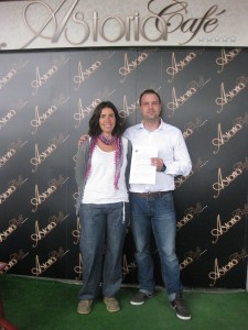 Ana Aretxabaleta, presidenta del C.W. Dos Hermanas, ha sido la encargada de  sellar el compromiso con los representantes del Astoria Café, que dirige Javier Carrero.