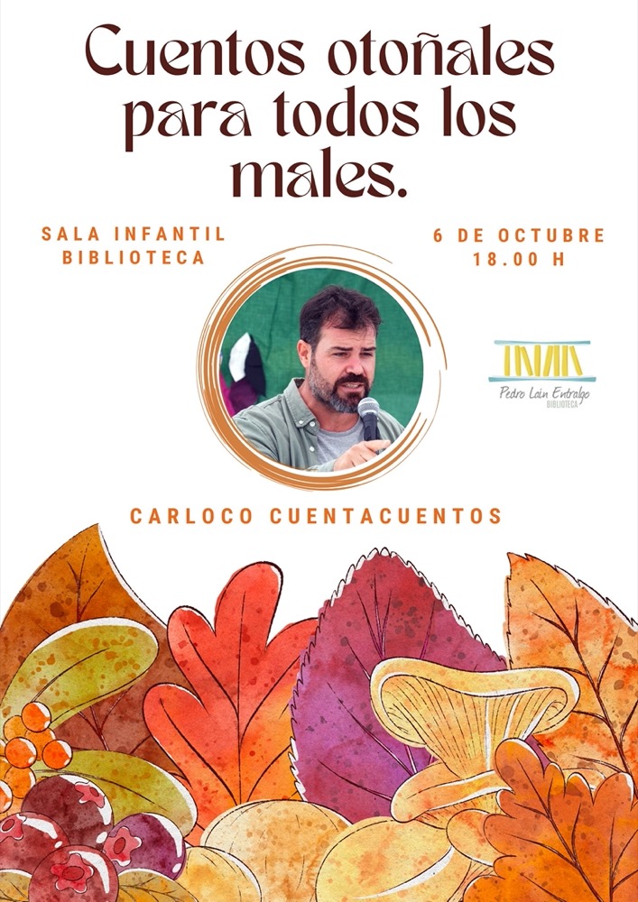 El próximo jueves 6 de Octubre a las 18 horas en la Sala infantil de la Biblioteca Pedro Laín Entralgo se inicia la temporada de cuentacuentos con «Cuentos otoñales para todos los males» a cargo de Carloco Cuentacuentos.