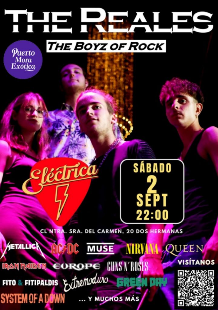 Eventos Concierto: The reales en Sala Eléctrica por Administrador|Publicada 31 de agosto de 2023El próximo sábado 2 de septiembre a las 22 horas concierto de «The reales» en la Sala Eléctrica.