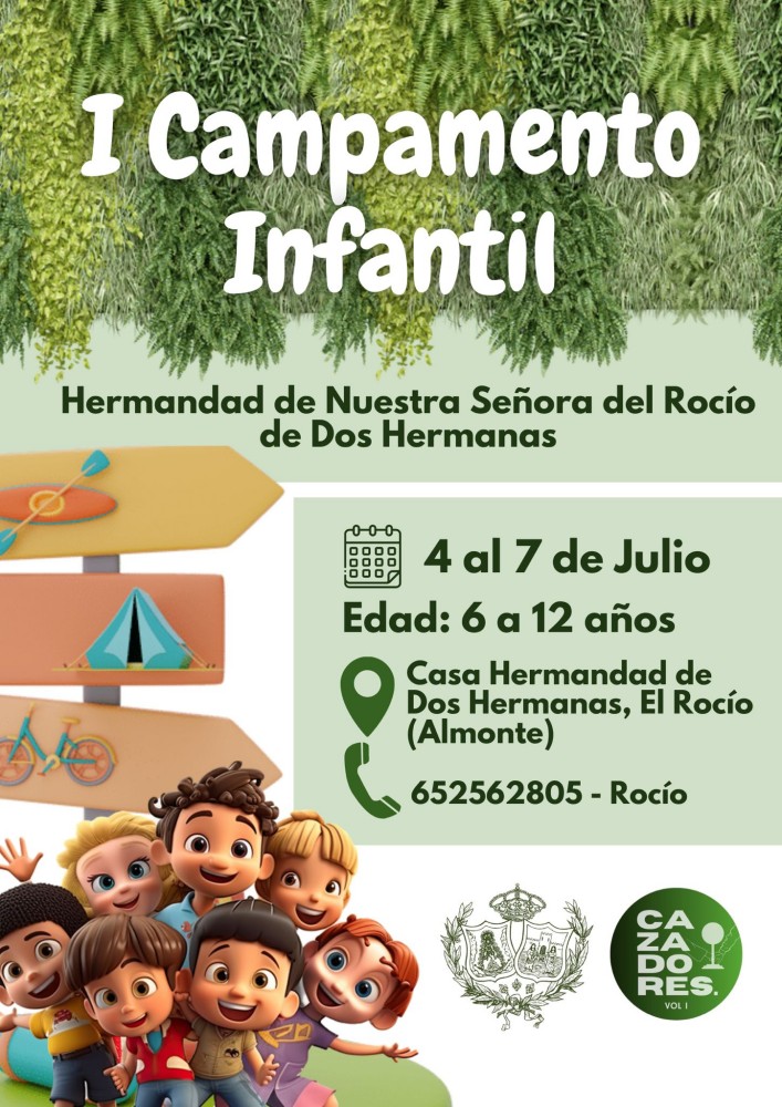 ¡Atención familias! La Hermandad del Rocío de Dos Hermanas anuncia su I Campamento Infantil del 4 al 7 de julio para niños y niñas de 6 a 12 años. ¡Una experiencia única llena de diversión y convivencia!