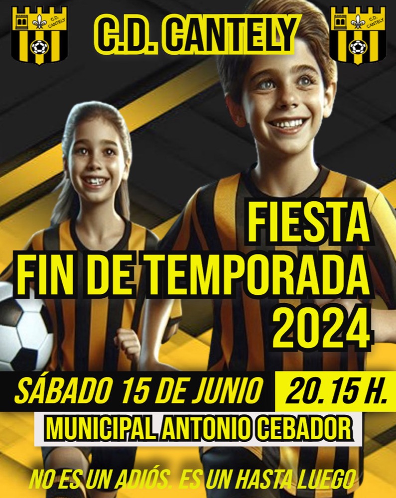 Actividades Fiesta de final de temporada en el CD Cantely por Administrador|Publicada 12 de junio de 2024El próximo sábado 15 de junio a las 20:15 horas se celebrará la fiesta de final de temporada en el CD Cantely.
