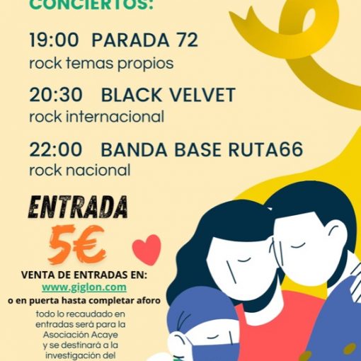 Recinto: RUTA 66 – BARDirección: Calle CALÍGULA 14 – Dos Hermanas (SEVILLA)Fecha: 14/06/2024 19:30 horasEntradas: desde 5,00 € Concierto solidario contra el cáncer infantil, a beneficio de la Asociación ACAYE.