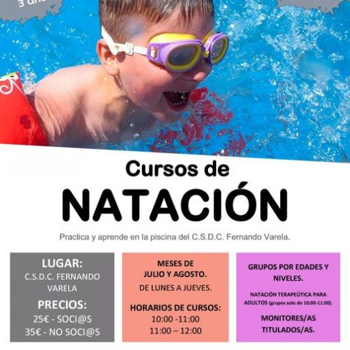 Este verano, en los meses de Julio y Agosto, cursos de natación en el CSCD Fernando Varela.