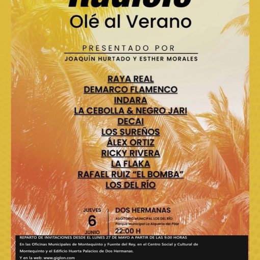 El próximo lunes comenzará el reparto de invitaciones de la Gala “Olé al Verano”. Presentada por Cadena Ser, el cartel musical contará como artistas invitados con Raya Real, Demarco Flamenco, Indara, La Cebolla & Negro Jari, Decai, Los Sureños, Álex Ortiz, Ricky Rivera, La Flaka, Rafael Ruiz «El Bomba» y […]