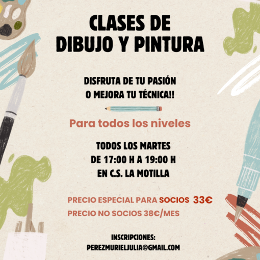 Todos los martes de 17 a 19 horas, clases de dibujo y pintura en el CS La Motilla.
