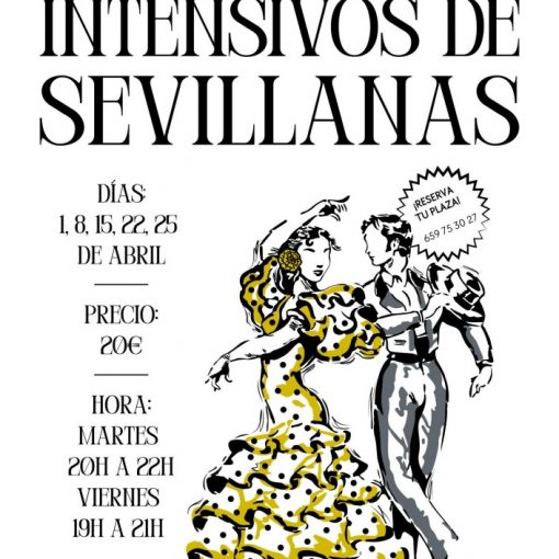 Los días 1, 8, 15, 22 y 25 de abril, en horario de 20 a 22 horas, taller intensivo de sevillanas en abril en el CS La Motilla.