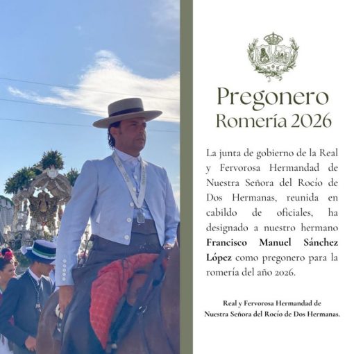 La Real y Fervorosa Hermandad de Nuestra Señora del Rocío ha anunciado una emocionante designación de cara a la próxima Romería de 2026. La junta de gobierno de la Hermandad, tras reunirse en cabildo de oficiales, ha resuelto nombrar a Francisco Manuel Sánchez López como el Pregonero que ensalzará a […]