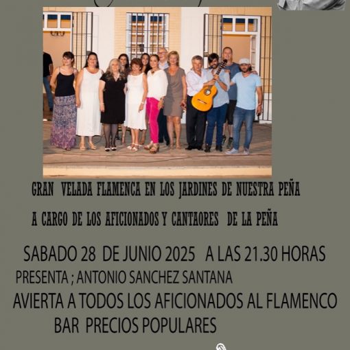 ¡Prepárate para vivir una noche inolvidable de arte jondo! La Peña Cultural Flamenca «Juan Talega» te invita a una Gran Velada Flamenca en los jardines de nuestra peña, un evento donde el duende y la pasión del flamenco serán los protagonistas. Serán los propios aficionados y cantaores de la peña […]