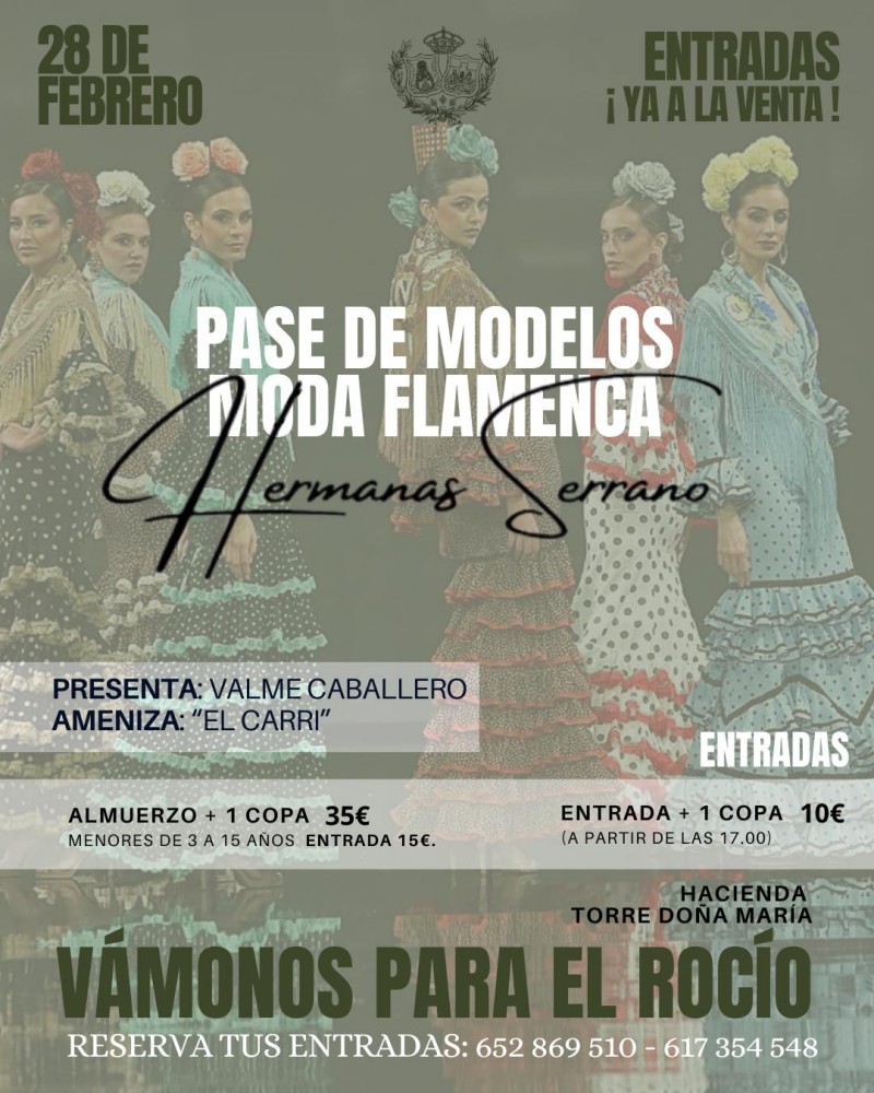 ¡La primavera y el volantes ya se sienten cerca! Bajo el sugerente título «Vámonos para el Rocío», se ha organizado un espectacular pase de modelos de moda flamenca a cargo de las reconocidas Hermanas Serrano. Será una jornada dedicada al estilo, la tradición y la convivencia en un entorno inigualable. […]