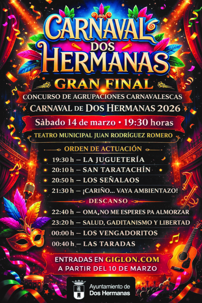 El Teatro Municipal Juan Rodríguez Romero se viste de gala para acoger el momento más esperado de las fiestas de febrero: la Gran Final del Concurso de Agrupaciones Carnavalescas 2026. Una noche de coplas, sátira y emoción donde los grupos finalistas lo darán todo sobre las tablas para hacerse con […]
