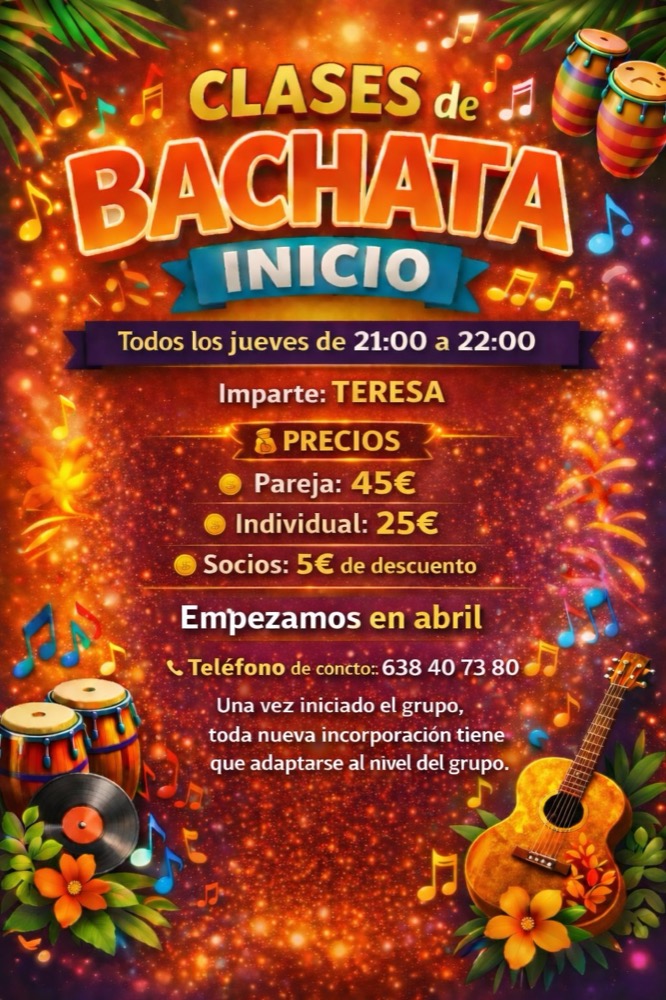 Si siempre has querido dominar los ritmos latinos y buscas una actividad divertida para desconectar, ¡esta es tu oportunidad! Abrimos un nuevo grupo de clases de Bachata (nivel inicio) para que aprendas paso a paso en un ambiente inmejorable. Bajo la dirección de Teresa, estas clases están diseñadas para quienes […]