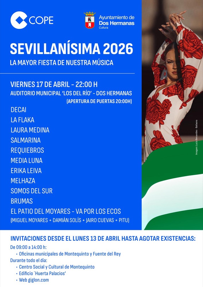 Prepárate para vivir la noche más esperada por los amantes de nuestra música. Vuelve Sevillanísima 2026, el evento referencia organizado por COPE que reúne sobre el escenario a las figuras más destacadas de las sevillanas y el arte andaluz. El emblemático Auditorio Municipal ‘Los del Río’ se convertirá en el […]