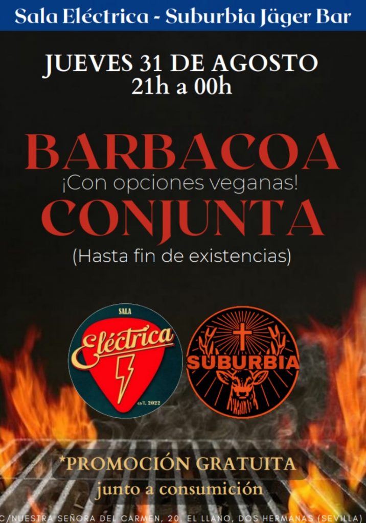 El próximo jueves 31 de agosto a las 21 horas, barbacoa conjunta con Suburbia en la Sala Eléctrica.