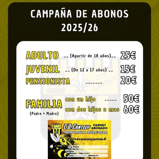 ¡No te quedes sin tu abono para la temporada 2025/2026 del C.D. Cantely! 🎉 Bajo el lema #CrecemosJuntos, el club ha lanzado su campaña para animar a todos los aficionados a ser parte de una nueva temporada llena de emociones y fútbol. Apoyar al equipo local es fundamental para su […]