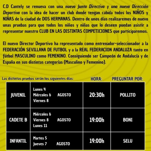 ¿Tu hijo o hija nació en 2014 o 2015 y su pasión es el fútbol? ¡El C.D. Cantely te ofrece la posibilidad de unirte a su equipo de Alevines para la Temporada 2025/2026! Es el momento perfecto para desarrollar sus habilidades y crecer como deportista. En el C.D. Cantely, nos […]