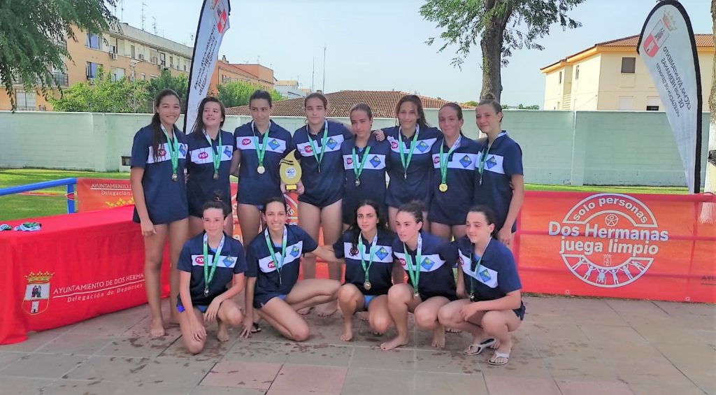 Jornada triunfal, y por partida doble, para el C.W. Dos Hermanas PQS en el cierre de las ligas andaluzas de waterpolo. El Complejo Deportivo Municipal Los Montecillos ha acogido la mejor despedida posible del calendario regional para los intereses de un club nazareno que este fin de semana se ha hecho con dos nuevas coronas andaluzas para acumular un total de cuatro en las competiciones de base 2021/2022, resultados a los que hay que añadir además dos terceros puestos.